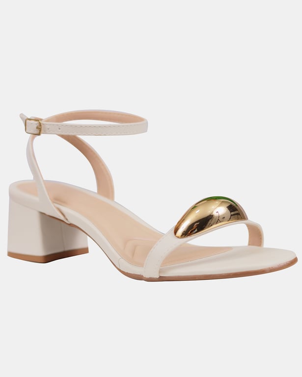 A Sandália Salto Off White Glam é a escolha perfeita para quem busca elegância e versatilidade. Confeccionada em Santorine off white, ela apresenta um detalhe metalizado dourado que adiciona sofisticação ao design minimalista. Com fechamento ajustável e salto bloco confortável, é ideal para ocasiões especiais ou para elevar o visual no dia a dia.